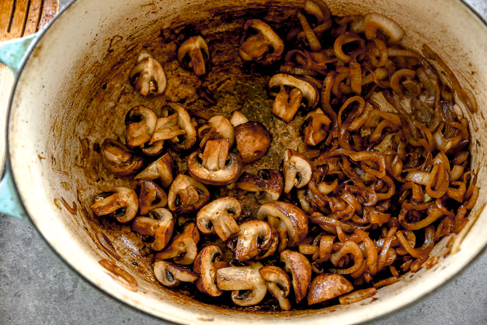 • Don’t rush the searing the meat or caramelizing the onions and mushroom step. The more caramelized, the deeper the flavor in the finished produce will be.