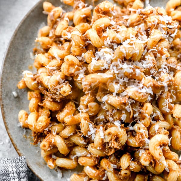 This Braised Pork Ragu is rich, cozy, and full of flavor. Pork shoulder is slow-braised in beer and balsamic until fall-apart tender, then tossed with pasta and parmesan.