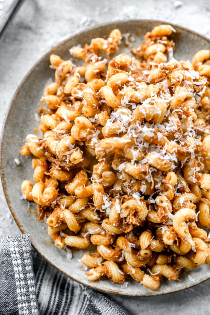 - Use pappardelle for a more traditional ragu feel or rigatoni if you want all that shredded pork to fill the big rigatoni holes.