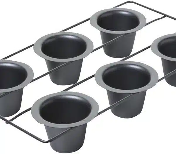 - Preheat the oven to 400° F. Place a rack in the bottom third of the oven. Heavily grease a popover pan with non-stick cooking spray. Place 1 tsp of butter in the bottom of each popover cup.