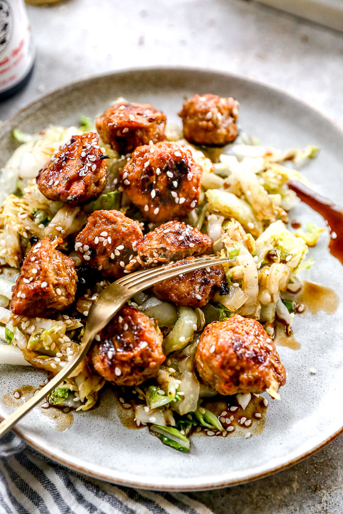 Let’s make dumplings but skip the finicky part. And by finicky I mean, let’s skip the dumpling altogether. These Chinese Meatballs transport the filling in a classic pork dumpling and turn in into a tender meatball fit for popping one after the other.