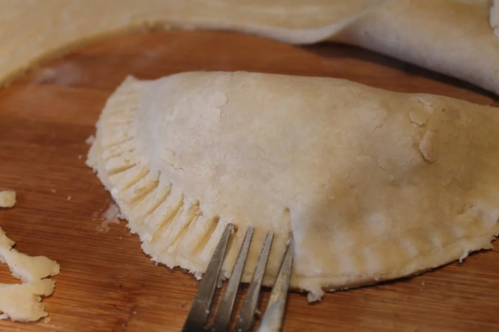 Fold one side over and press edges together. Make them pretty with a fork. You could also crimp them and make them even prettier but I prefer a more rustic look. At this point I like to stick them back into the fridge for about 15 minutes, just to ensure the dough stays nice and flaky. I know, I know it’s a lot of back and forth with the fridge, you don’t have to do this but, trust me, it’s worth it.