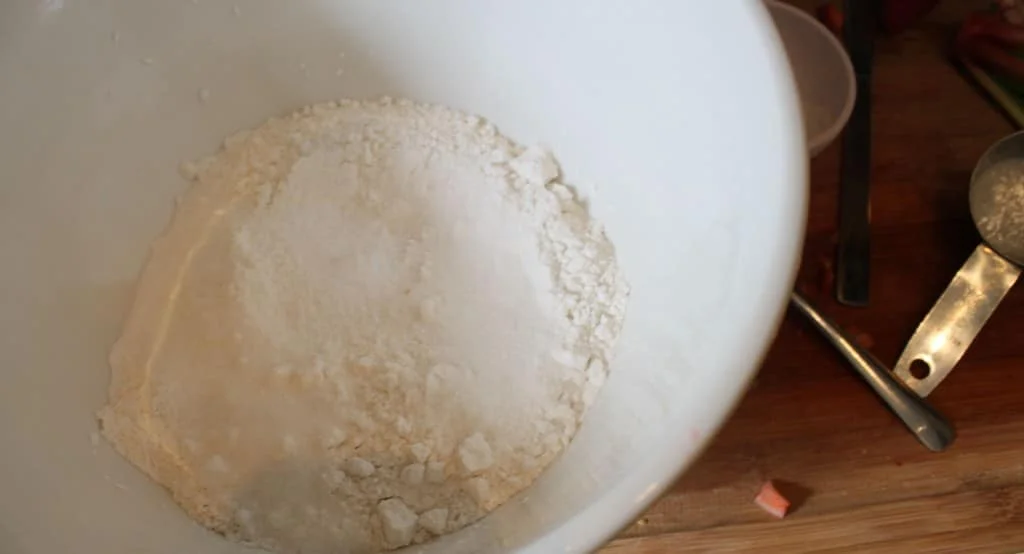 Start by making your crust.  In a bowl combine flour, sugar, and salt.