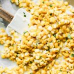 This Creamy Corn Recipe is a dairy-free creamed corn recipe that's not only healthy but so delicious. Instead of cream, it's simmered in a coconut milk borth studded with garlic, cilantro and crushed red pepper.